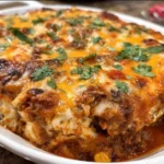 This recipe feels like a warm kitchen hug. It delivers familiar Mexican-inspired flavors with minimal effort. The combination of seasoned beef, tangy red enchilada sauce, and melty cheese creates a comforting, satisfying dinner that kids and adults reach for again and again.