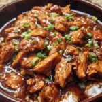 There is a small ritual to serving this at my table. I pile steaming white rice in the center of wide shallow bowls, spoon the glossy chicken and sauce over the top, and scatter chopped green onions and a few sesame seeds for texture. The contrast between the warm, sticky sauce and the fluffy rice is comforting. Sometimes I add a side of quick-pickled cucumbers to cut through the sweetness with a bright snap.