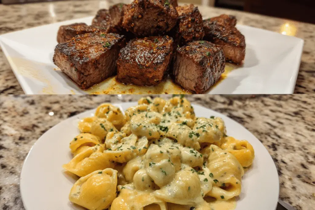 Cajun Steak Bites & Cheesy Garlic Shells Skillet