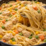 This is the kind of dinner that feels like a warm hug on a plate. The flavors are familiar, creamy, and soothing, with tender bites of chicken and soft pops of mixed vegetables. The savory soups create a silky sauce that clings to every twist of pasta. It is homey but not heavy, and it comes together in under an hour.