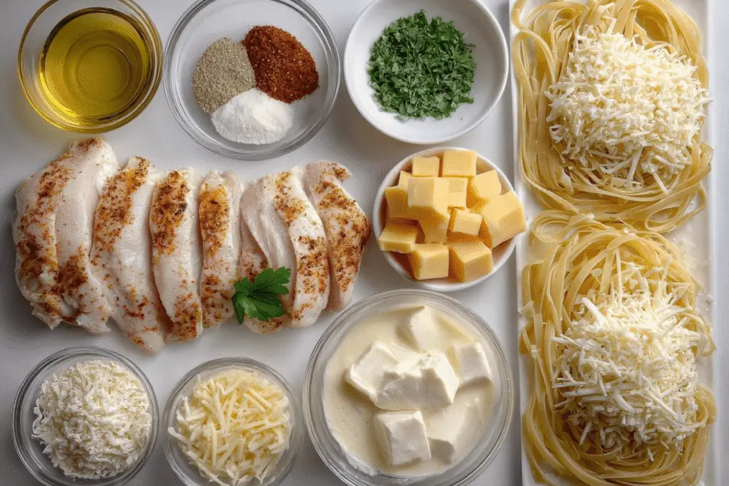 Creamy Cheddar Parmesan Chicken Linguine with Cheesy Sauce
