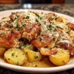 This dish works emotionally and practically. It gives you a tactile memory: the way the house fills with warm garlic, the tender pull of chicken that falls moist, and potatoes so soft they melt with a fork. It’s food that feels like a hug after a busy day.