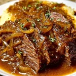 There is a special satisfaction in making a dish that fills your home with a slow, savory scent and rewards patience with fork-tender meat and caramelized, jammy onions. Juicy French Onion Pot Roast is one of those meals that becomes woven into family memories. It comforts, it feeds, and it makes the kitchen feel warm and safe. Serve it when you want to gather people around the table without fuss, when you want to announce care through food, or when you simply crave something that tastes like home. Keep a pot of this on repeat through the cool months and let the leftovers transform into sandwiches and hearty bowls that will bring the same comfort all over again.