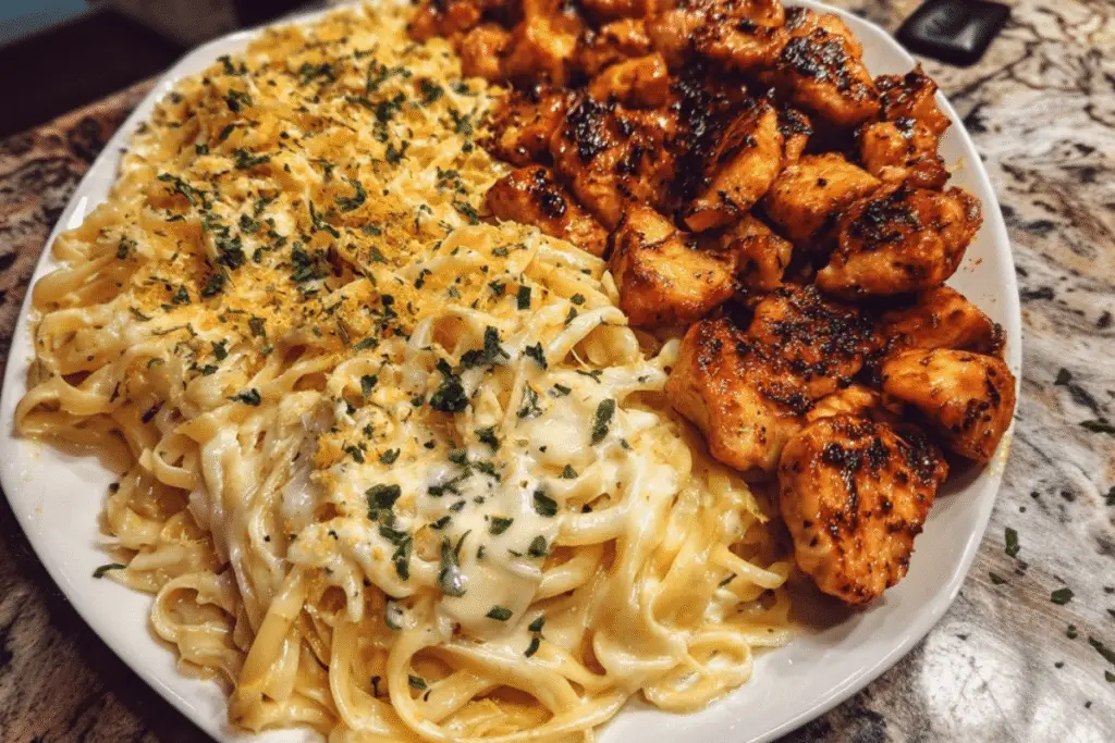 Lemon Garlic Butter Chicken Bites with Savory Parmesan Linguine