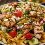 Mediterranean Chicken Pasta Salad is perfect when you want a meal that looks and tastes like you spent more time on it than you actually did. The aroma of warm, seasoned chicken folded with olive oil and lemon is quietly persuasive. If you like food that is easy to love and easy to share, this recipe will become a weeknight star and a picnic champion.
