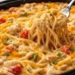 Chicken spaghetti offers more than just a satisfying meal; it provides a whole experience wrapped in warmth and flavor. The combination of tender chicken, creamy mushroom soup, and zesty tomatoes with green chilies creates a dish that’s both comforting and exciting. Each bite bursts with flavor, blending the creaminess of the sauce with the lightness of the tomatoes and the heartiness of the chicken.
