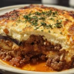 The airy, velvety béchamel on top gives way to a savory meat ragu and slices of browned, tender eggplant, creating a melody of textures. If you enjoy cozy bakes that feed a family and make the home smell irresistible, you might also love this simple banana bread recipe for dessert after dinner. Tonight, I want to walk you through every comforting, creamy, and aromatic detail so you can make moussaka that feels like a warm hug on a plate.