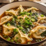 Imagine steam lifting from the bowl. The aroma of garlic and ginger greets you first. Then you taste a delicate broth with a whisper of soy sauce, followed by a dumpling that yields easily when bitten. A snappy leaf of bok choy or a handful of spinach brightens the whole bowl. This soup is both practical and indulgent. It’s the kind of meal that feeds your need for warmth, ease, and a little culinary comfort.