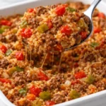 There is something so satisfying about a dish that smells like home and plates like comfort. This casserole balances savory beef, sweet bell peppers, and tender rice into a single comforting pan that gives you texture and warmth in every bite. The tomatoes add a gentle acidity that brightens the dish while the Worcestershire sauce brings depth and a slightly tangy savory note.